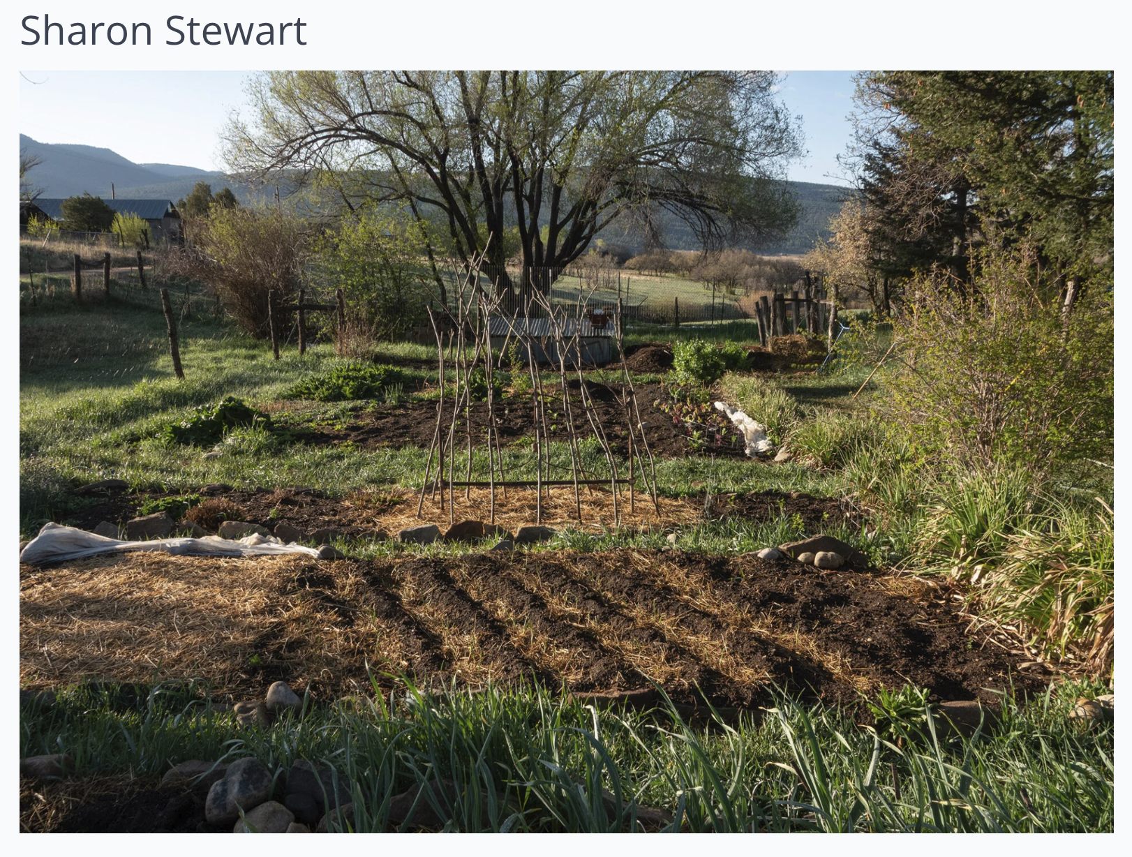 Sharon Stewart was born in Edinburg, Texas along the US - Mexico border. She studied finance and economics at the University of Texas and Harvard University and now resides in the mountain village of Chacón in Mora County. She has devoted many years to photographing the economic, social, familial, mythic, and religious influences that define the cultural landscape of northern New Mexico in her portfolios Exit West: A Cultural Confluence and El Agua es la Vida: A Village Life Portrait, which explores acequia culture in El Cerrito, NM. She is currently photographing the aftereffects of the 2022 Hermit’s Peak + Calf Canyon Fire. Her earlier Toxic Tour of Texas project portrays the efforts of grassroots environmental activists to protect the health of their land, water, air, families, and culture from the effects of hazardous waste policies by government and industry. The Center for Creative Photography holds the El Agua es la Vida and Toxic Tour of Texas portfolios in its collection as part of the Water in the West Project and Archive. For over three decades she has renovated her 130 year old adobe house and established a home garden, which, through building soil and relationships, has served as a guide to patience, observation, and humility.